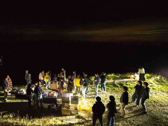 夕方から平谷湖畔でバーベキューを開始、移住希望の方と村民の方の距離が徐々に縮まり、